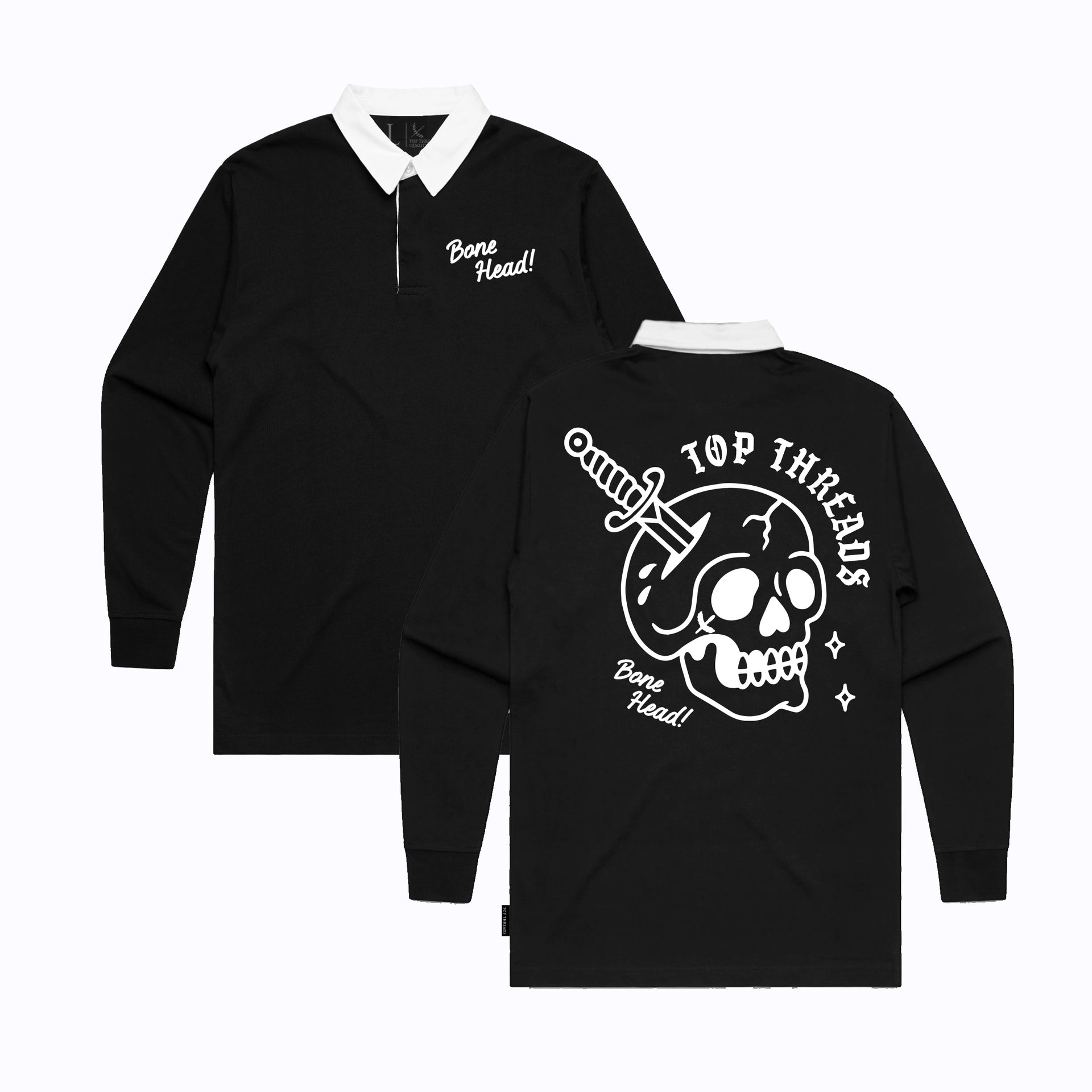 BONE HEAD HEAVY LONG SLEEVE POLO - BLACK