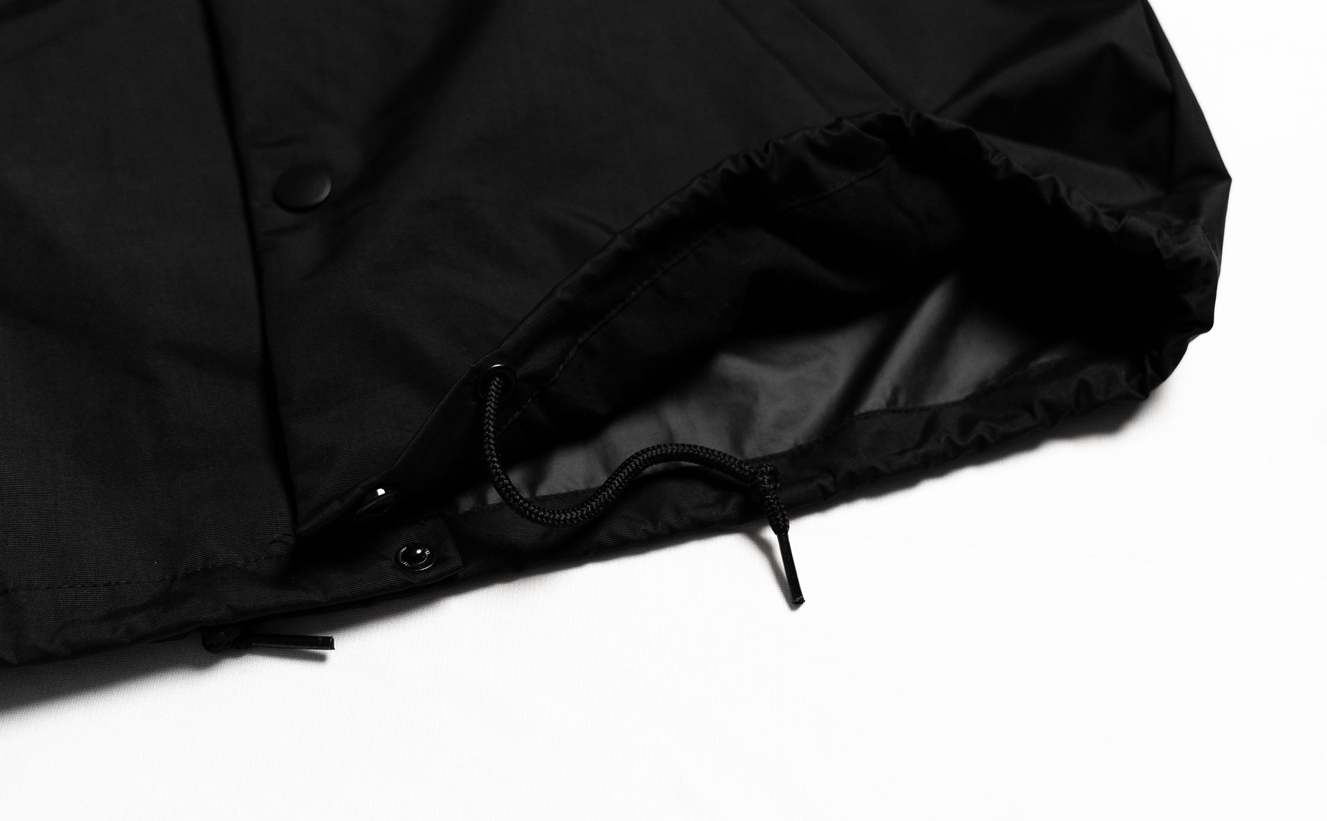 - drawcord closure at hood and bottom opening