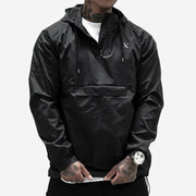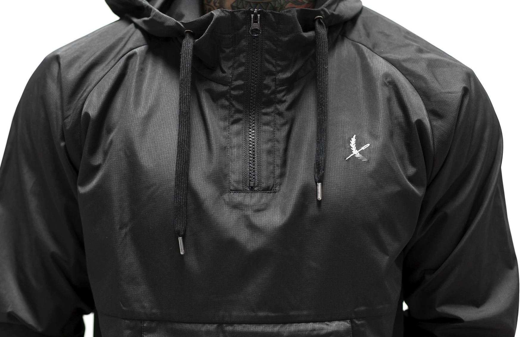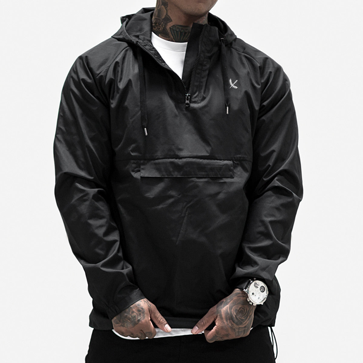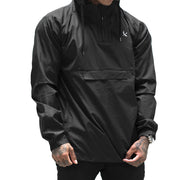 New pullover zip-up hooded windbreaker! Lightweight and water resistant this jacket is made to be worn year round and has a durable construction to protect against the wind and rain and harsh rays of the sun. This jacket features a reflective logo print for night time visibility.
