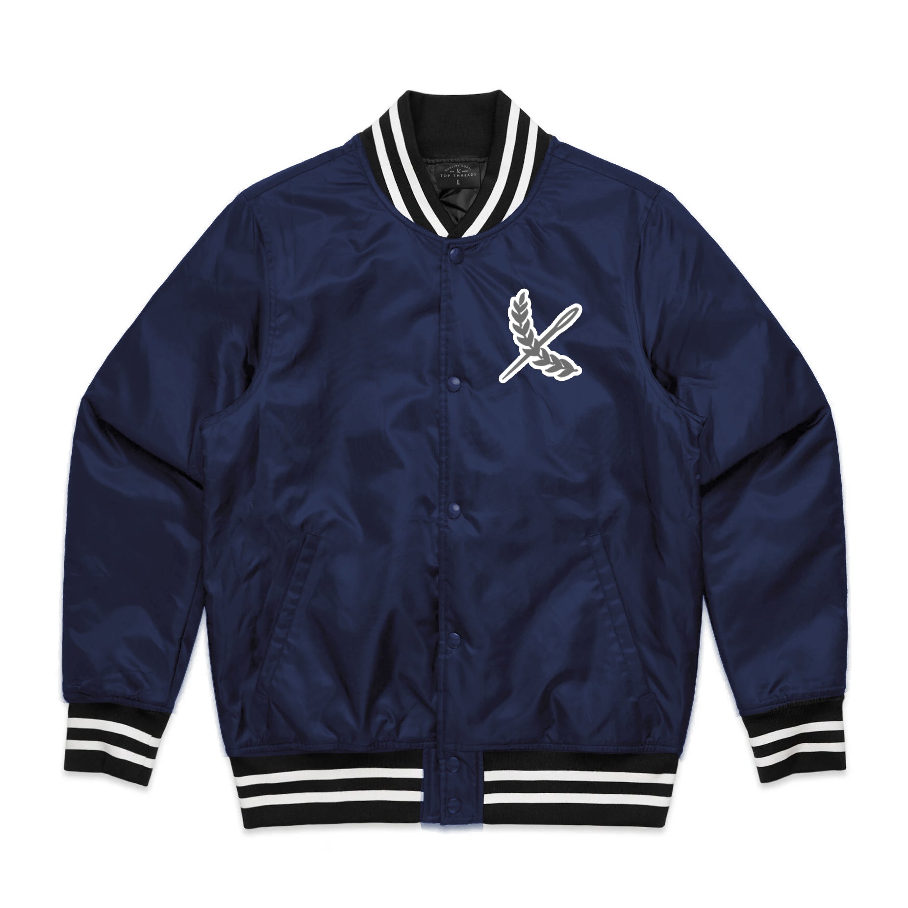 The Imperial Varsity Bomber Jacket features a polyester padded lining and a nylon outer shell. This jacket is light enough to layer under but heavy enough to keep you warm.