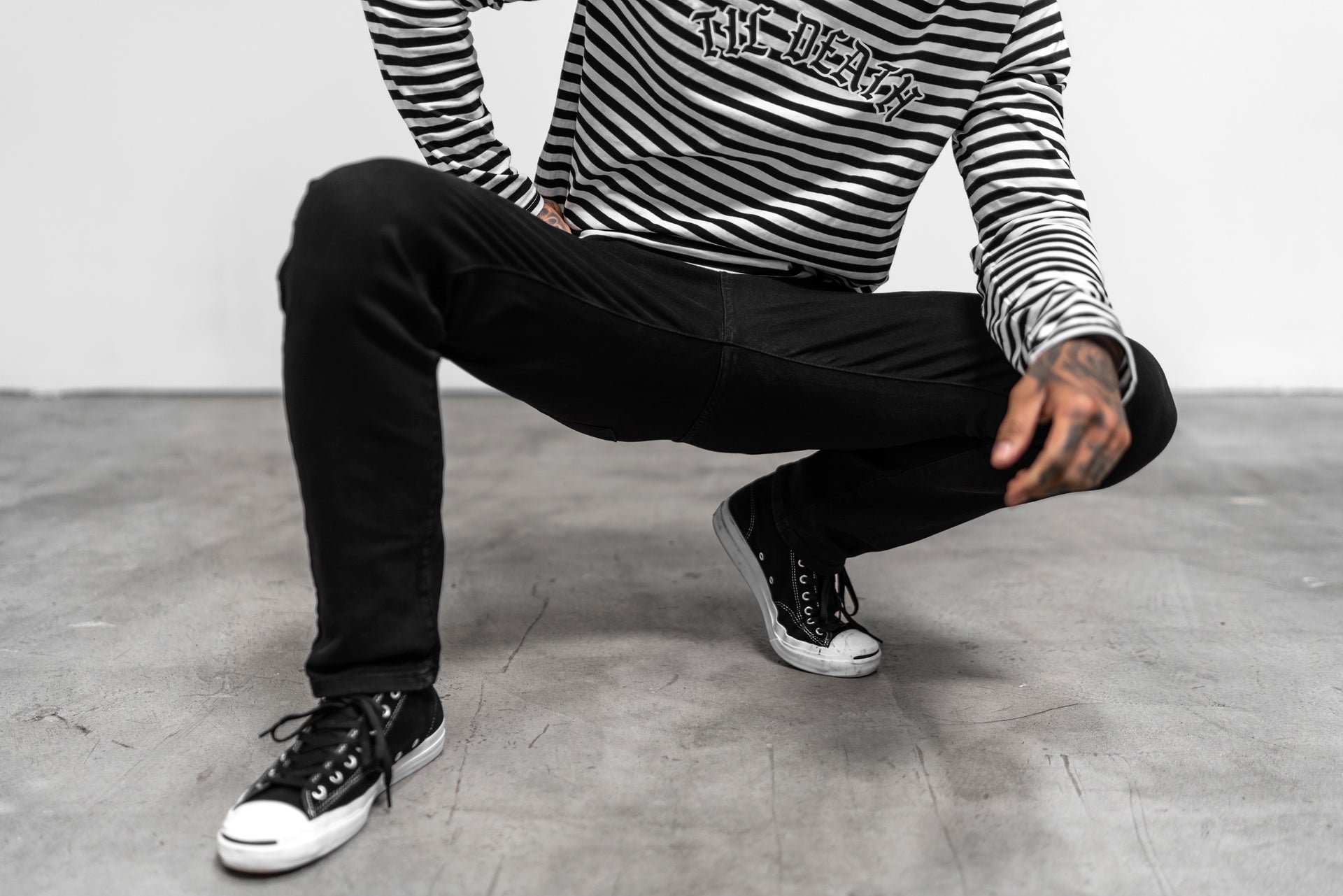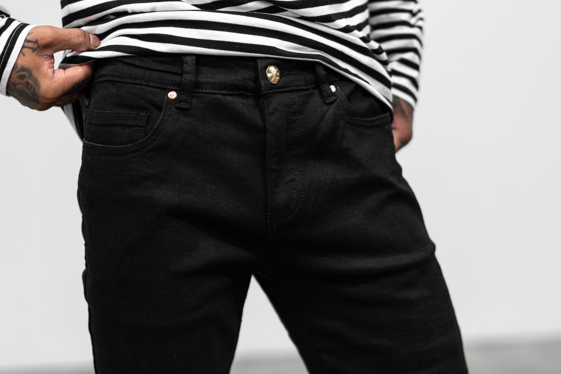 The Top Threads black wash denim is a classic 5-pocket jean.