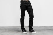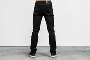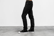 This classic jean is cut to to a slim straight fit with regular rise. The black fabric features the lightest and slightest wash giving it enough maturity. With 2% spandex and 98% durable cotton, this jean is tough, durable and STRETCHY.