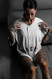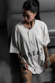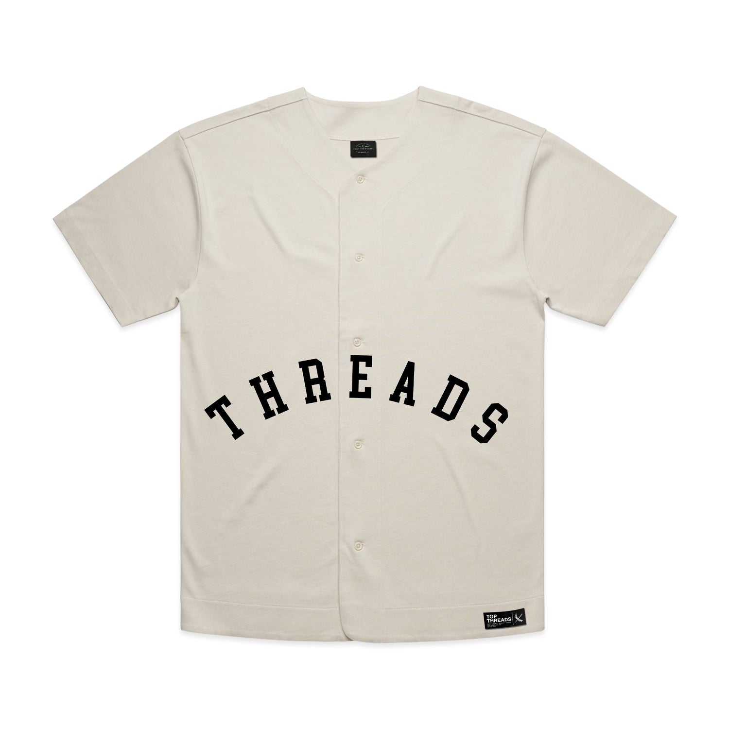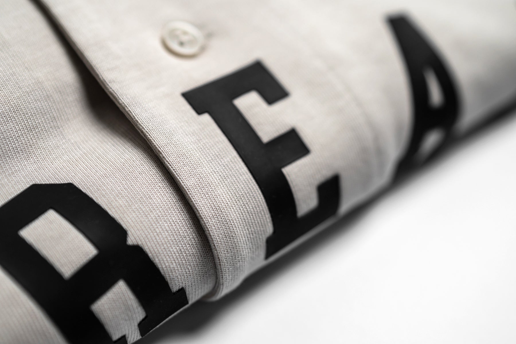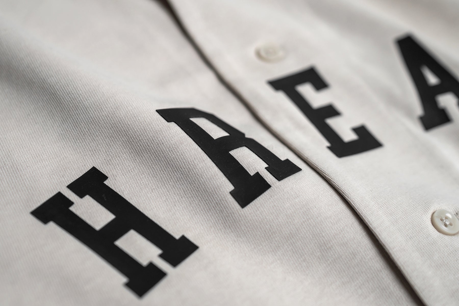 Unlike your typical baseball jersey, this full button jersey is crafted with heavy quality carded cotton, a process in which debris is removed while the fibers align ensuring a smooth threading. You'll be able to instantly feel the weight and quality of the overall garment on top of the other unique details like the matte black 3D lettering application and tonal corozo nut buttons.
