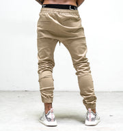 - Cuffed hem pants with drop crotch, 2 side pockets and 2 back pockets