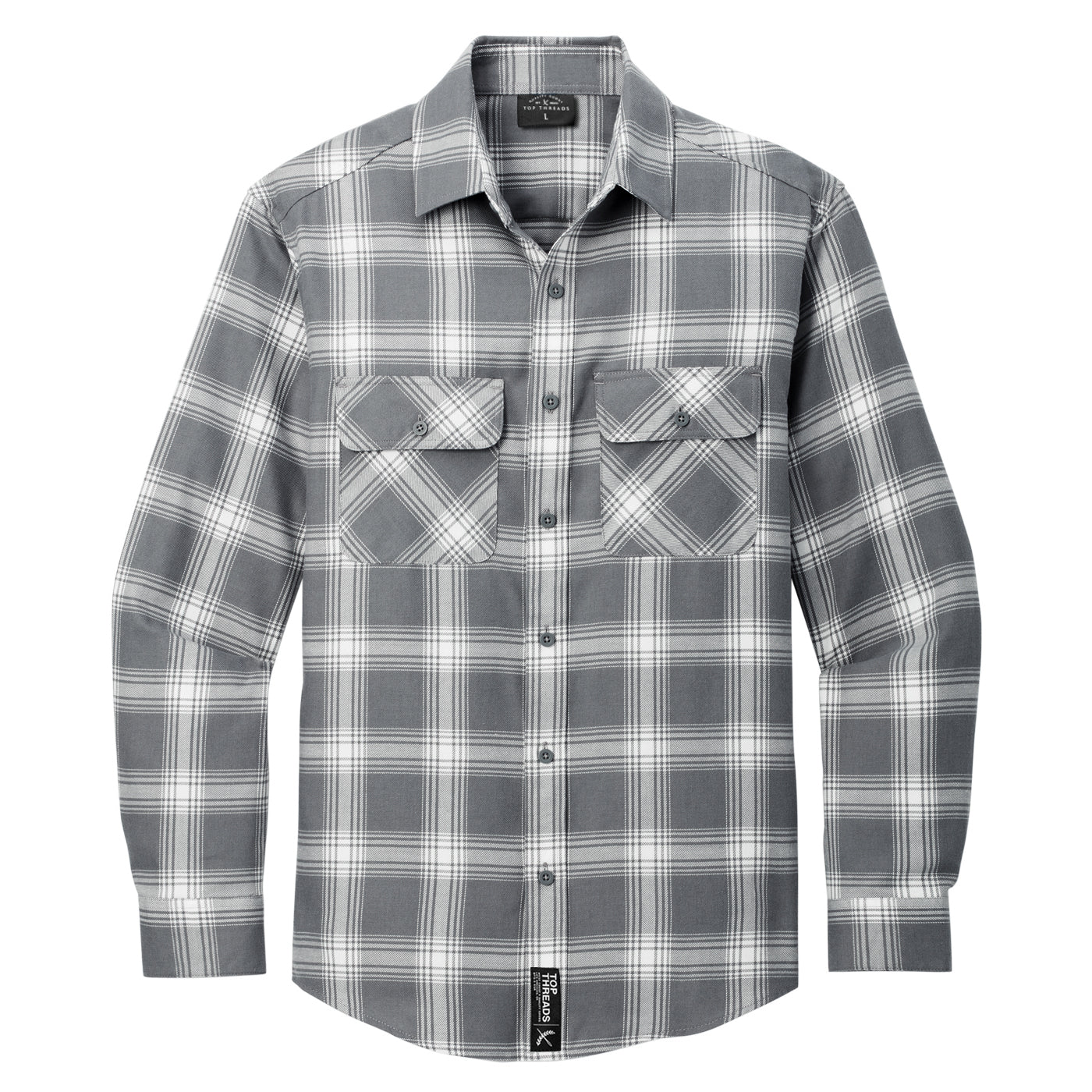 - Double button-flap chest pockets