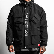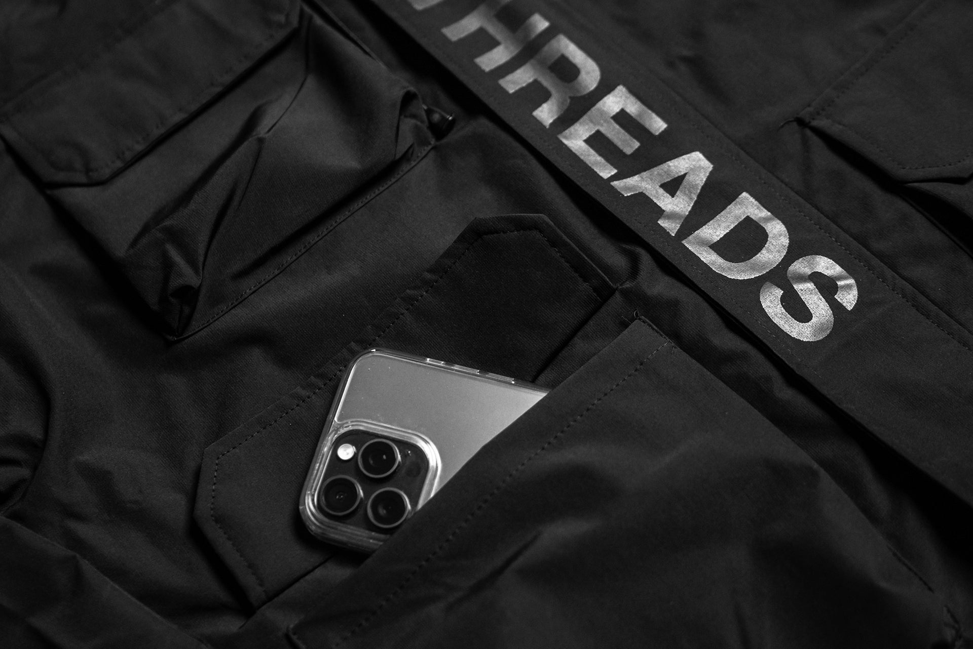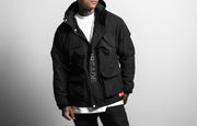 Introducing the Utility Jacket, a mid weight jacket with easy access pockets, full zip with snaps and a adjustable hood. All you need for a night out.